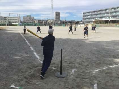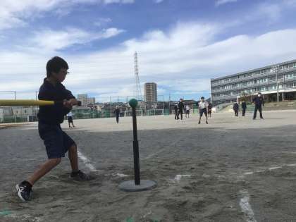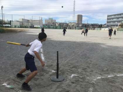 1・2・3・4・5・6学級の体育です。ティーボールに取り組んでいます。