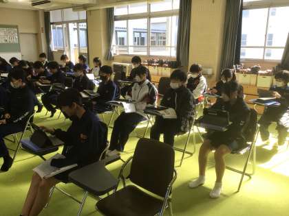 13学級の音楽です。アプリを使って、場面に合った音楽を作曲しています。
