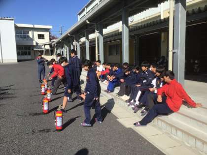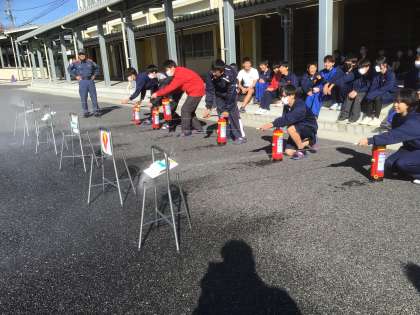 11/20(木)防災学習12 公開日 2025/11/20 更新日 2025/11/20 輝く朝中生! 防災学習の一環で、豊田市消防本部より講師を招き、消化器体験をしています。今回は訓練のため、火の元をめがけ、水をかけます。 1年 2年 3年 特別支援学級