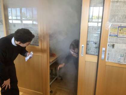 11/20(木)防災学習15 公開日 2025/11/20 更新日 2025/11/20 輝く朝中生! 防災学習の一環で、豊田市消防本部より講師を招き、3年生は煙道体験をしています。しっかり鼻と口をおさえ、身を低くして、壁づたいに避難します。 3年