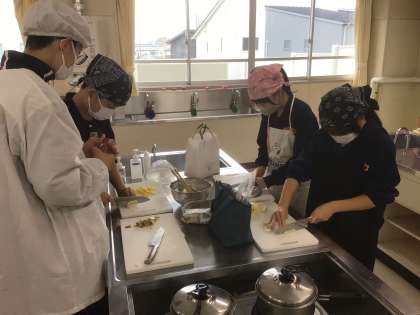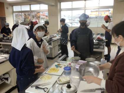 21学級の家庭科です。じゃがいもの調理をしています。