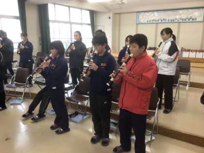 28学級の音楽です。アルトリコーダーの演奏に取り組んでいます。