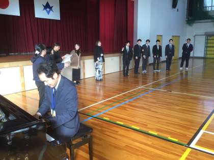 11/28(金)卒業の歌1 公開日 2025/11/28 更新日 2025/11/28 輝く朝中生! 3年生の学年集会で卒業の歌が発表されました。学年主任がピアノを弾き、3年生の教員が歌って発表です。 3年