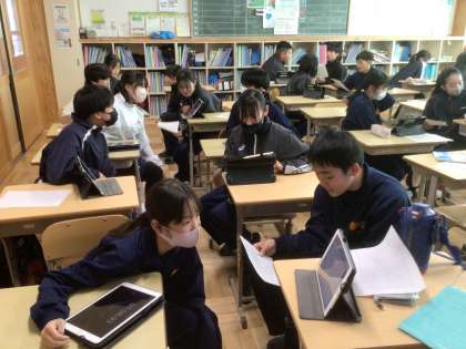 14学級です。来週のSDGs発表に向けて準備をしています。