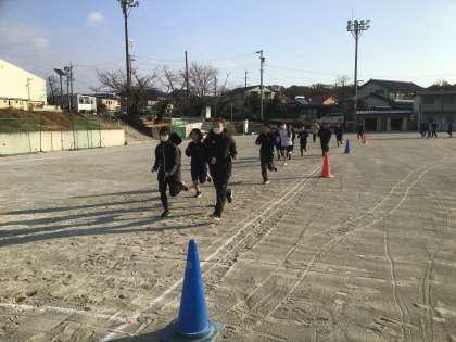 27・28学級の体育です。8分間走に取り組んでいます。
