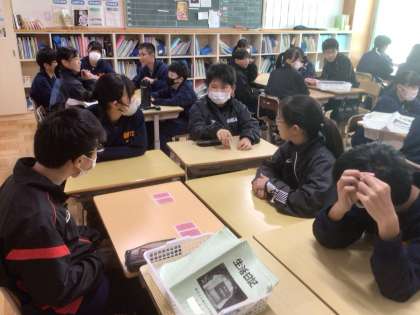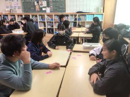 15学級です。今朝の話し合い活動は、トランプの数字を使って、話し合っています。