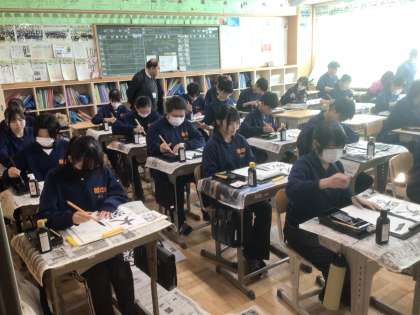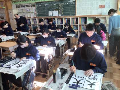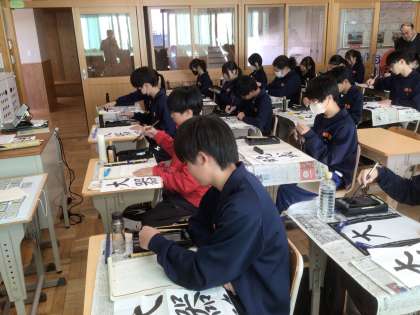 22学級の国語です。書き初めに取り組んでいます。書いている言葉は「大器晩成」です。