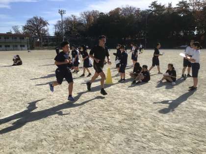 12/10(水)授業の様子5 公開日 2025/12/10 更新日 2025/12/10 輝く朝中生! 15・16学級の体育です。8分間走に取り組んでいます。走っている仲間へ温かい声援が飛んでいます。 1年