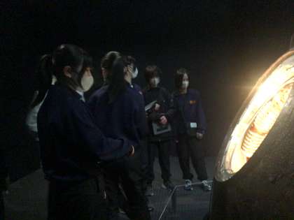 12/16(火)授業の様子4 公開日 2025/12/16 更新日 2025/12/16 輝く朝中生! 36学級の理科です。豊田市博物館の「深宇宙展」を見学し、近年目覚ましい発展をとげている宇宙探査分野について学習しました。 3年