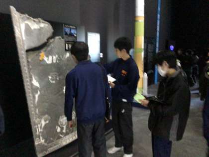 12/16(火)授業の様子7 公開日 2025/12/16 更新日 2025/12/16 輝く朝中生! 35学級の理科です。「深宇宙展」を見学するために、豊田市博物館に行きました。本物に触れ、宇宙探査分野について学びを深めました。 3年