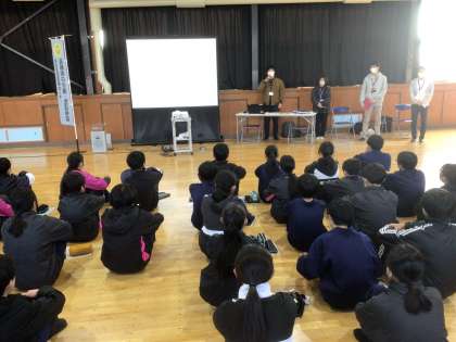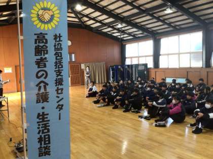本日、1年生は、社協包括支援センターの講師の方を招き、「認知症サポーター養成講座」を開催しています。写真は12・17学級です。