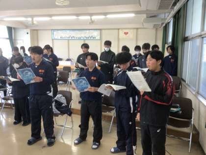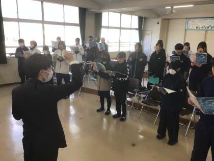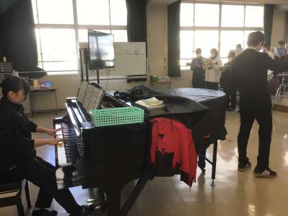 31学級の音楽です。合唱曲「虹」を練習しています。