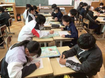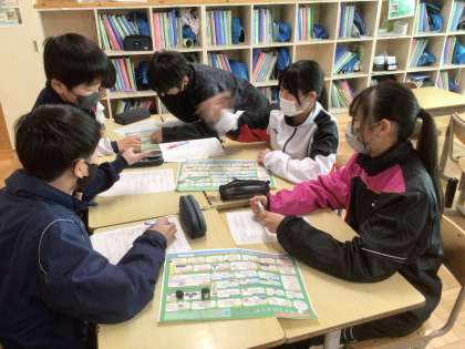 1/9(金)総合学習3 公開日 2026/01/09 更新日 2026/01/09 輝く朝中生! 13学級です。ライフキャリアすごろくをしています。自分で進路を選択する活動を通して、中学卒業後の進路を意識しています。 1年