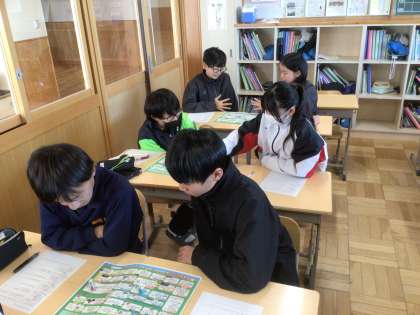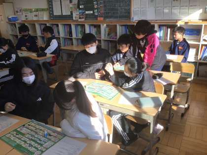 11学級です。ライフキャリアすごろくをしています。自分で進路を選択する活動を通して、中学卒業後の進路を意識しています。