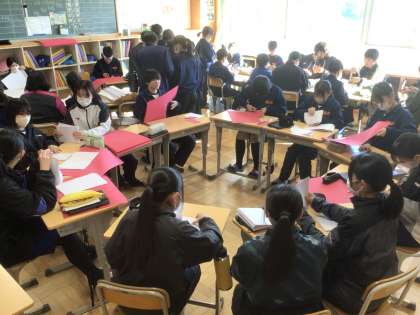 2年生は、3月に開催する「3年生を送る会」に向けて担当ごとに準備をしています。