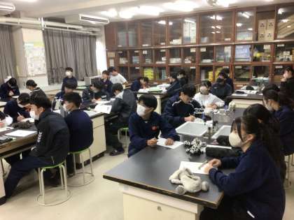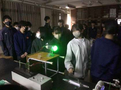 1/14(水)授業の様子5 公開日 2026/01/14 更新日 2026/01/14 輝く朝中生! 21学級の理科です。学習課題は、「電気とは何が流れているのだろうか」です。クルックス管を使って、電気を観察しています。 2年