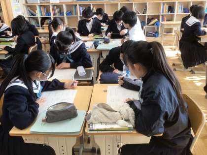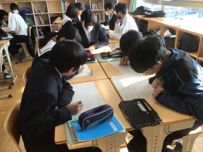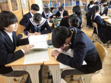 36学級の数学です。グループ内で協力しながら文章問題を解いています。
