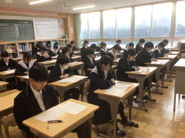 1/29(木)学習診断テスト1 公開日 2026/01/29 更新日 2026/01/29 輝く朝中生! 1年生の学習診断テストが始まりました。1時間目は英語です。最初にリスニングテストに取り組みます。写真は19・18学級です。 1年