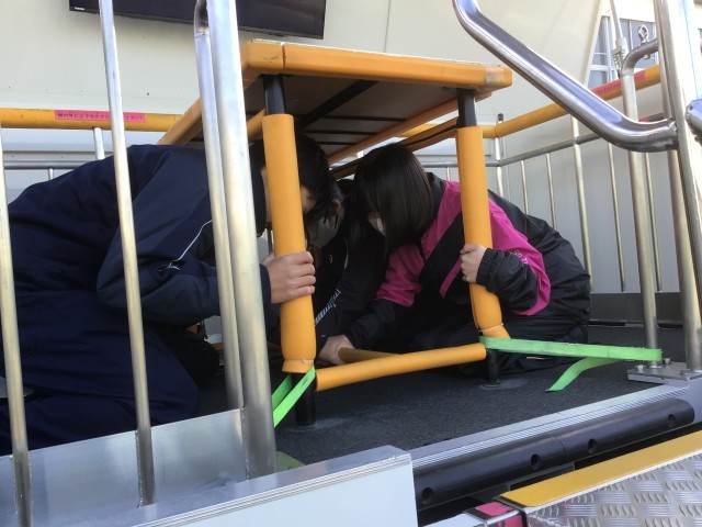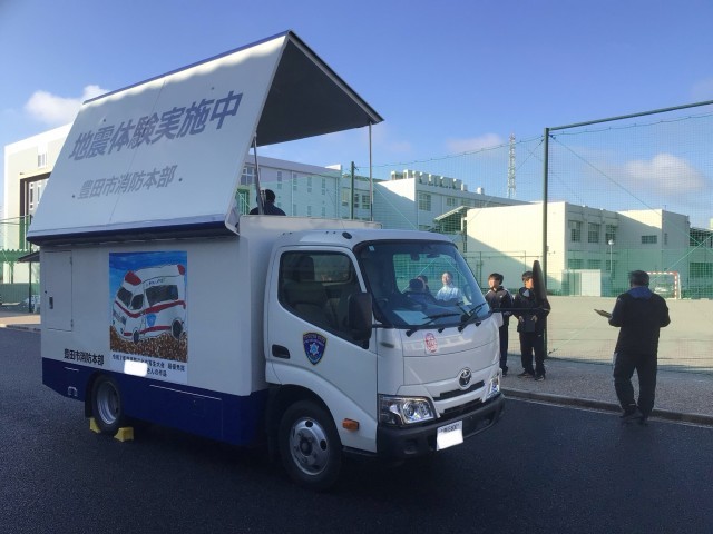 17・19学級の理科です。地震体験車を活用して、地震の学習をしています。