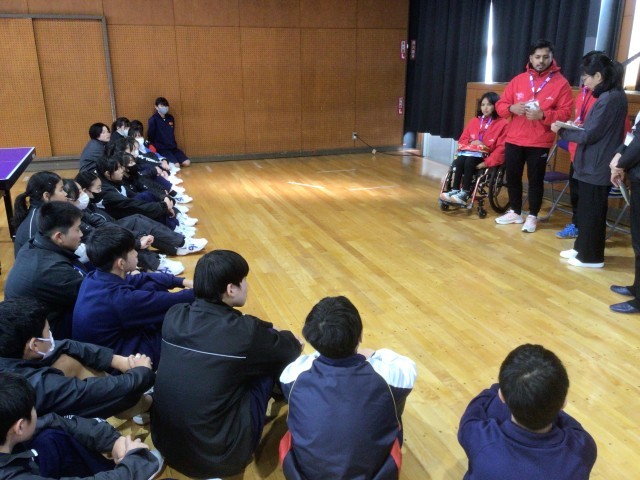 1/30(金)授業の様子3 公開日 2026/01/30 更新日 2026/01/30 輝く朝中生! 11・12学級の体育です。今年のアジアパラ競技大会に向けて、豊田市に来訪しているモンゴル、キルギス、ネパールの卓球選手団と交流しました。 +2 1年