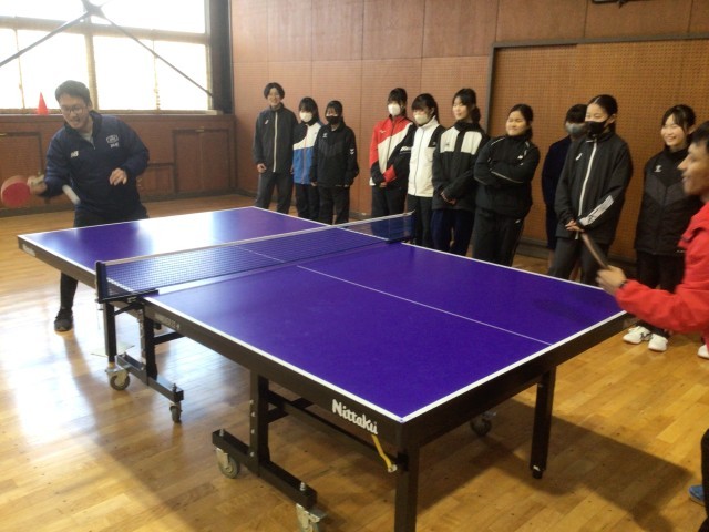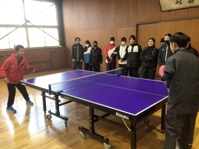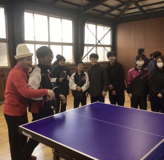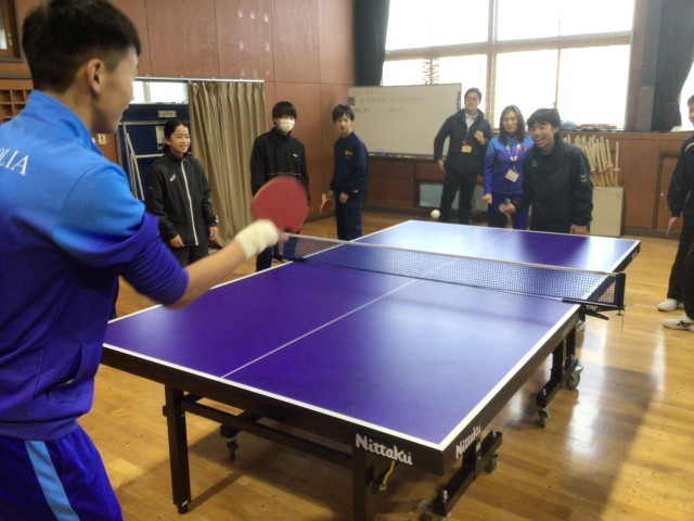 11・12学級の体育です。選手のみなさんと卓球で交流しました。