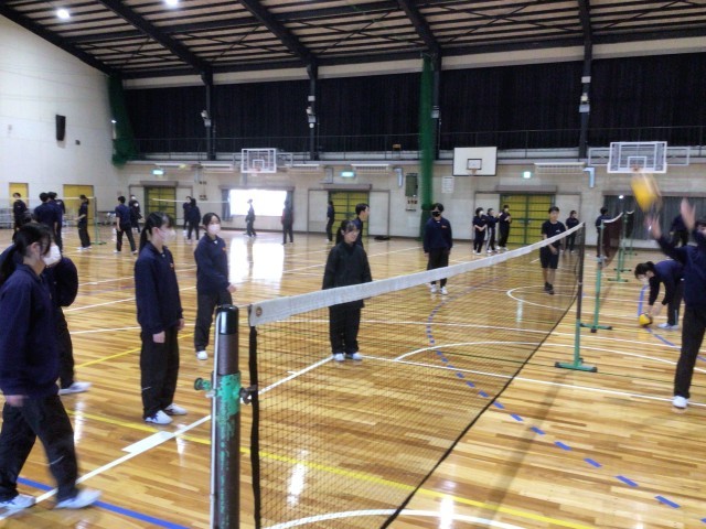 31・32学級の体育です。バレーボールに取り組んでいます。楽しそうにボールをつないでいます。