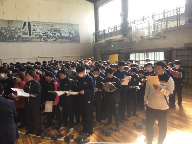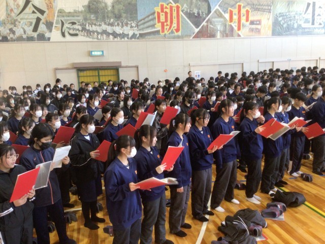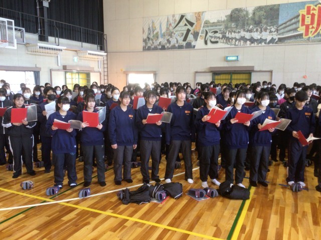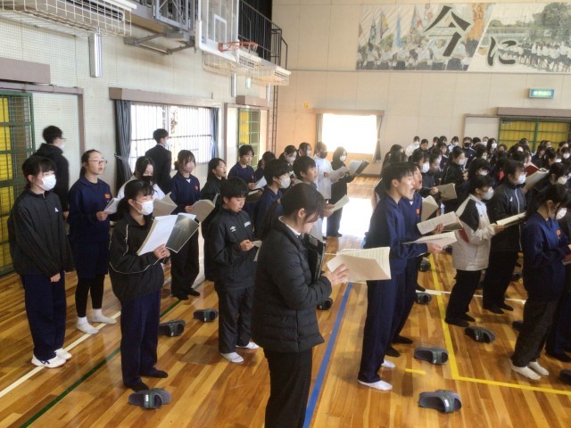 3年生を送る会に向けて、1・2年生は合唱練習をしました。
