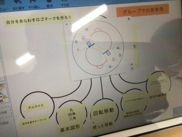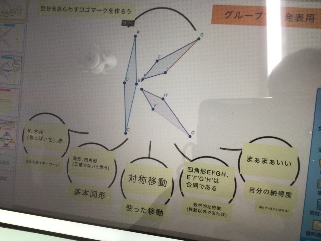 19学級の数学です。平面図形の学習として、オリジナルのロゴマークを作り、数学的に探っています。