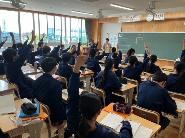 体育祭練習が行われている中、授業頑張っています。主体的に参加する姿が素晴らしいですね。