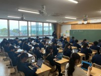 1年生の知能検査の様子です。放送に合わせて進めます。全クラス静かに真面目に取り組...