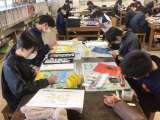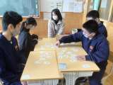 1〜6学級の社会です。グループで都道府県カルタをしています。