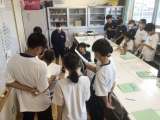 環境美化委員会です。節電ポスターを作成しています。