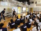 17・18学級の体育です。バレーボールに取り組んでいます。授業のはじめに、カバー...