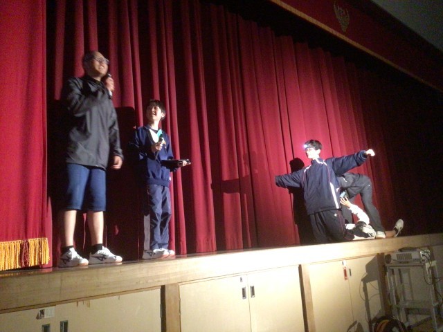 2年生が体育館で有志発表をしています。マジック、部活語り、歌などの発表です。