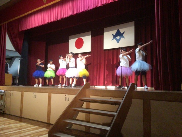 歌、ダンス、劇の発表で会場は盛り上がっています。