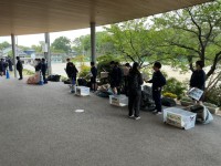 環境美化委員会主導で資源回収が昇降口前で行われています。牛乳パック、新聞紙、衣類...