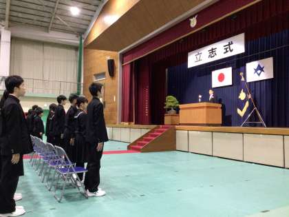 第58回立志式 公開日 2023/12/02 更新日 2023/12/02 学校行事 2年生がこれまでの歩みを振り返り、自立に向けての決意を伝える「立志式」を行いました。 校長式辞の中では、チャレンジする気持ち、役に立とうとする気持ち、感謝の気持ちをもって、前に進んでほしいと、2年生へのメッセージが送られました。 2年生一人一人が、力強く決意の言葉を語りました。今日の気持ちを忘れずに、自立に向けての歩みを続けてほしいと思います。