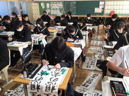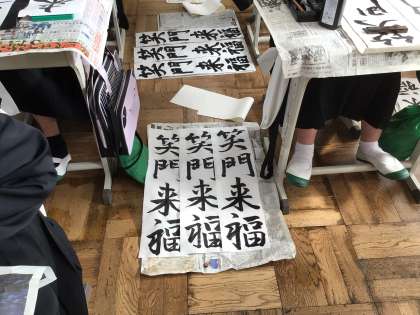 1年生 万里一空 2年生 笑門来福 3年生 理想の実現 を書きました。