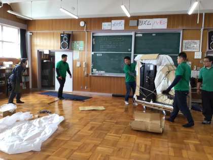 ピアノの更新 公開日 2024/03/18 更新日 2024/03/18 校長室から 音楽室のピアノがあまりに古く、調律にも支障をきたしていましたので、新品に更新されました。 350kgもあるグランドピアノを3人の大人が階段を持ち上げて設置していただきました。 校長