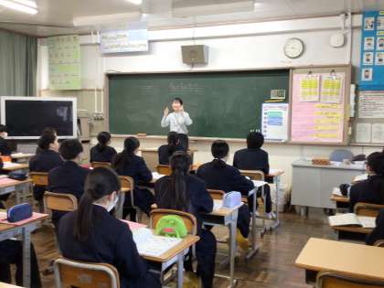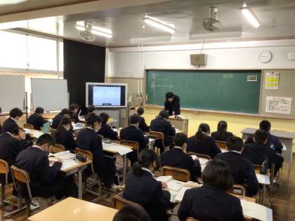 1Aは数学、1Bは英語の授業の様子です。数学では、集中して問題を解いています。英語は発音の練習中です。今週末は授業参観です。保護者の皆様は、ぜひ中学校での授業の様子を直接ご覧ください。