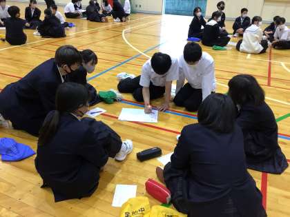 フレンドパーク 公開日 2024/05/01 更新日 2024/05/01 学校行事 班のメンバーで相談しながら、クイズに答えています。なかなか難しいようです。 1年 2年 3年 特別支援学級 生徒会 行事