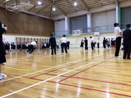フレンドパーク 公開日 2024/05/01 更新日 2024/05/01 学校行事 最後は障害物リレーです。目隠しをして、仲間の声を頼りにボールを叩く場面では体育館に大勢の声が響き渡り、盛り上がりました。学年の枠を越えて、みんなで楽しめました。 1年 2年 3年 特別支援学級 生徒会 行事