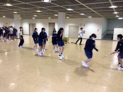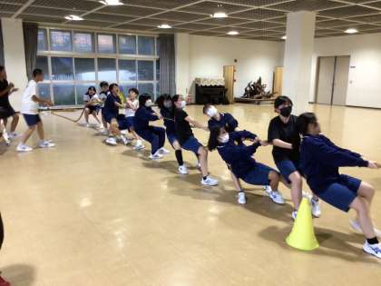 学年レク パート2 後半は長縄とび、綱引き、ドッチビーをクラス対抗で行いました。全員、元気いっぱいです。