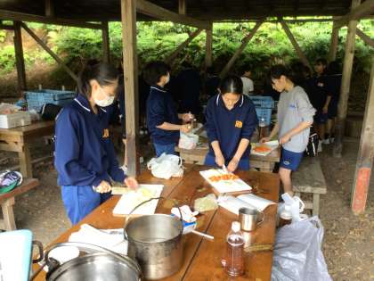野外炊飯が始まりました。無事に食べられるカレーが完成するでしょうか。