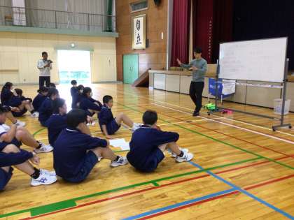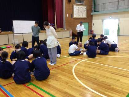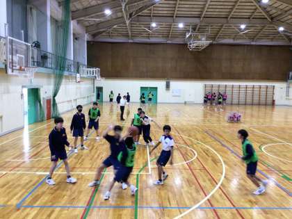 2年A組の体育の研究授業を行いました。種目はバスケットボールです。準備運動やウォーミングアップの後、各チームで前の時間の反省から課題を決めて、ゲームをしました。