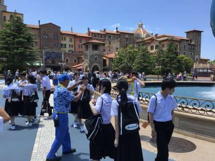 いよいよ待ちに待ったディズニーシーです。バス内にいる時から生徒のワクワク感が伝わってきました。チケットを受け取るとアリの子を散らしたように班ごとで消えていきました。それぞれの班で楽しんでくることでしょう。