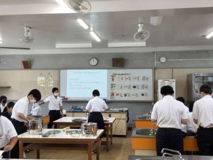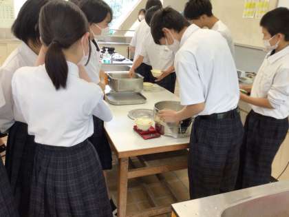 栄養教諭と担任による授業です。自分の身長から算出したごはんの適正量を盛り付けています。自分に必要な食事の量を知り、普段の食事を振り返りました。