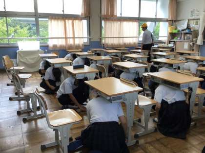 避難訓練 公開日 2024/09/02 更新日 2024/09/02 学校行事 地震から火災発生を想定して避難訓練を行いました。 この夏は大きな地震があり、南海トラフ地震臨時情報(巨大地震注意)が出されたこともあって、防災意識は高まっていると思います。自然災害はいつ発生するかわかりません。いざという時に慌てず最善の判断・行動がとれるように備えておきたいものです。 1年 2年 3年 特別支援学級 行事