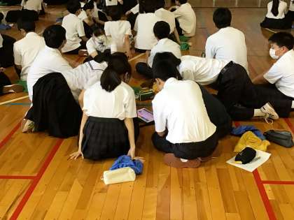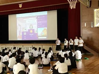 生徒会企画 マウントバトル 公開日 2024/09/12 更新日 2024/09/12 特別活動 木曜日の長い自活の時間を使って、生徒会の企画が行われました。縦割りのグループで、学習用タブレットを使って、様々な問題に答えました。「興味津々」の正しい漢字が選べないグループがたくさんあったのが残念でしたが、暑さをものともせず、みんなで楽しめました。準備してくれた生徒会役員の皆さん、お疲れ様でした。