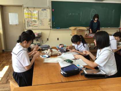 3年 授業の様子 公開日 2024/10/02 更新日 2024/10/02 各学年から 3年A組の家庭科の授業です。手縫いで何やら製作中でした。何ができるのかを尋ねたら、「ヤドンができます」と教えてくれました。完成が楽しみです。 3年